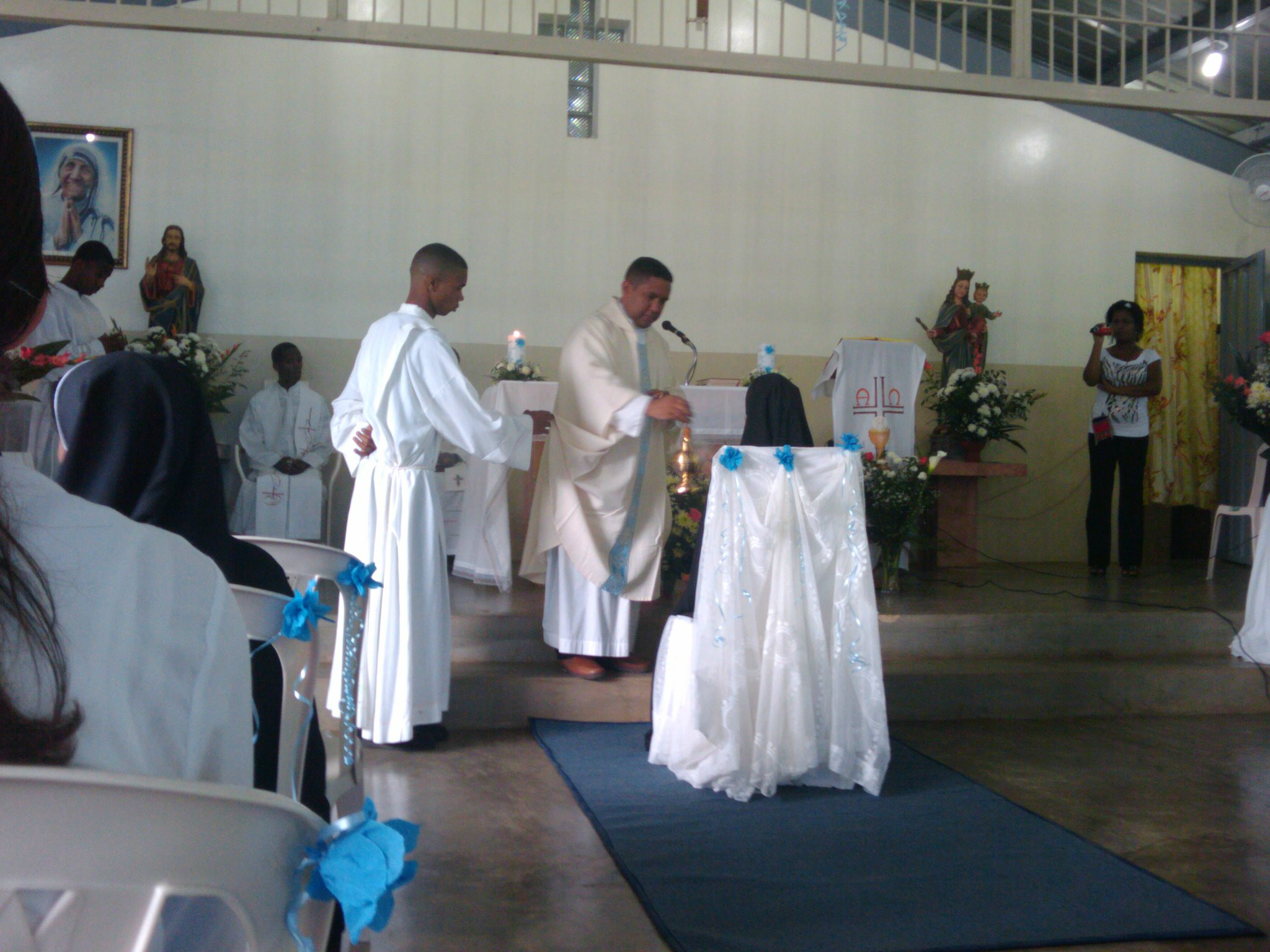A traves de esta pagina te damos la biembenida a la Parroquia Beata Teresa de Calcuta, ubicada en la Sección Mata de Palma, Municipio San Antonio de Guerra, Carretera Guerra, Bayaguana; pertenece a la Arquidiócesis de Santo Domingo, Primada de América. El Decrto de Creación de la Parroquia Beata Teresa de Calcuta, fue promulgado por Su Eminencia Reverendísima Monseñor Nicolás de Jesús Cardenal López Rodríguez, es del día 23 de septiembre del año 2003, siendo párroco el P. Fermín de Los Santos y vicario el P. Nazario Moreno Gómez. Esta Parroquia fue creada con el título, Parroquia Sagrado Corazón de Jesús. Más tarde, a solicitud de las Hermanas de la Caridad, pasó a llamarse P. Beata Teresa de Calcuta.